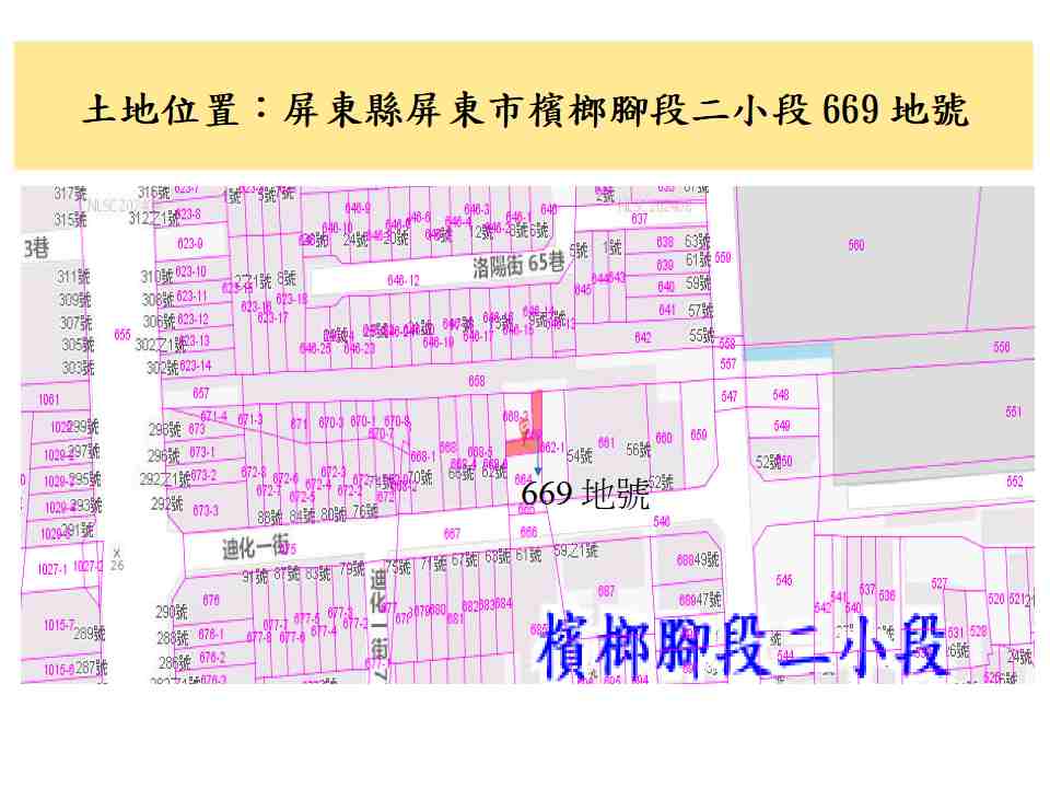 土地標示:屏東縣屏東市檳榔腳段二小段0669-0000地號