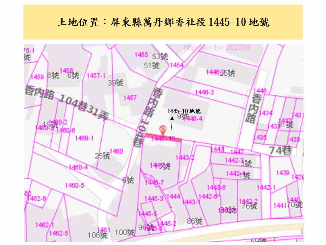 土地標示:屏東縣萬丹鄉香社段1445-0010地號